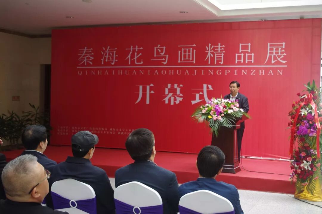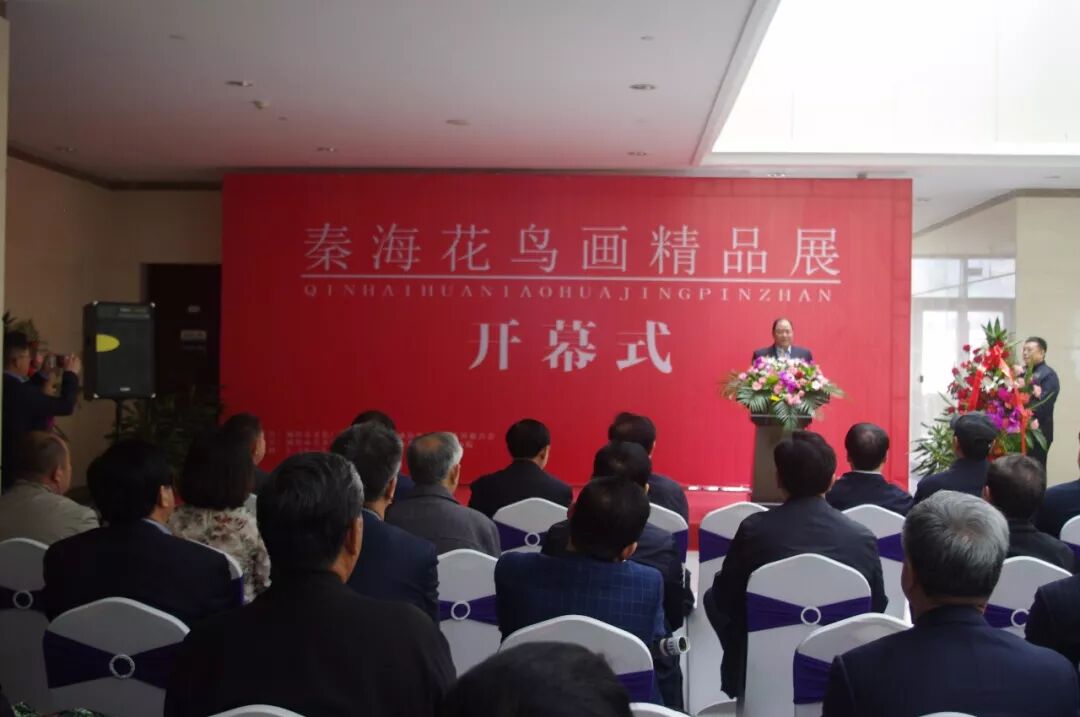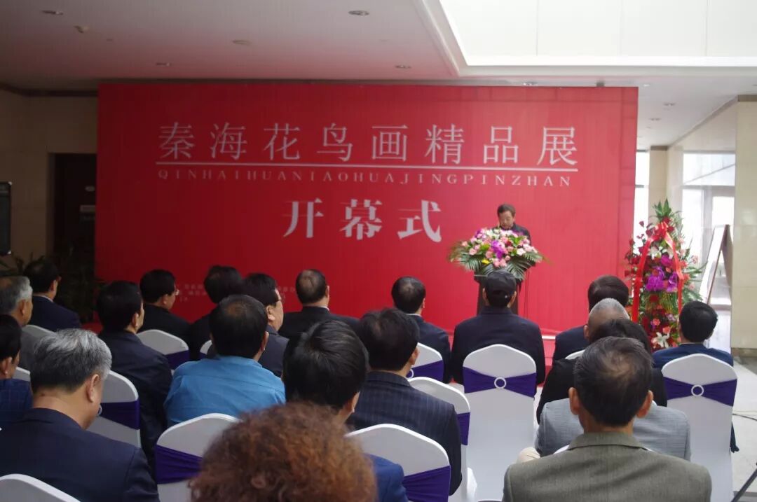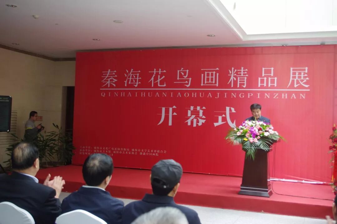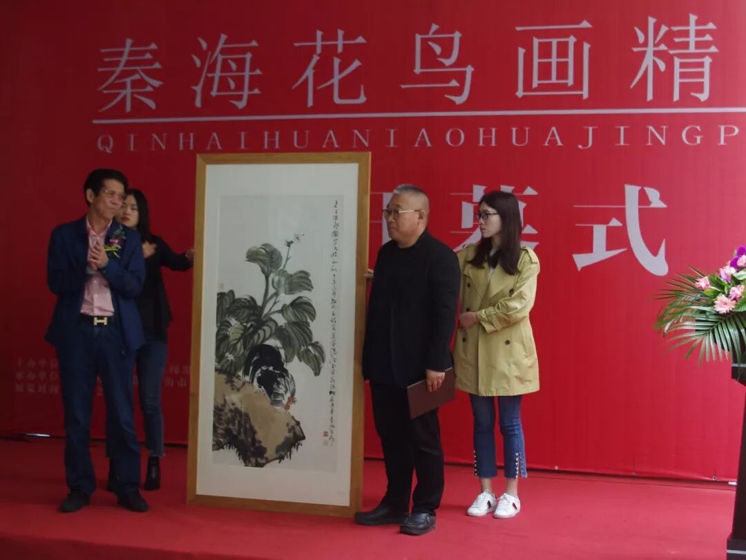 由威海市文学艺术界联合会、威海市文化广电新闻出版局主办的〈秦海花鸟画精品展〉,于2018年5月12日上午在威海市美术馆隆重开幕。威海市委原书记、人大常委会主任王培廷,文化部巴黎中国文化中心主任殷福,鲁东大学党委书记徐东升,威海市委原常委、秘书长、宣传部部长张剑,威海市人大委员会原副主任邓洪爱等领导出席。巴黎中国文化中心主任殷福,威海市委原常委、秘书长、宣传部部长张剑,威海市文学艺术界联合会主席张建岭,山东省美术家协会主席团委员、威海市美术家协会主席、威海画院院长郭峰分别致辞,秦海致答谢词并向威海市美术馆捐赠中国画作品〈知秋〉,威海市美术馆馆长邹本虹向秦海先生颁发收藏证书。威海市委原书记、市人大常委员会主任王培廷宣布画展开幕。开幕式由威海市文化广电新闻出版局调研员、威海市美术家协会副主席于新建主持。