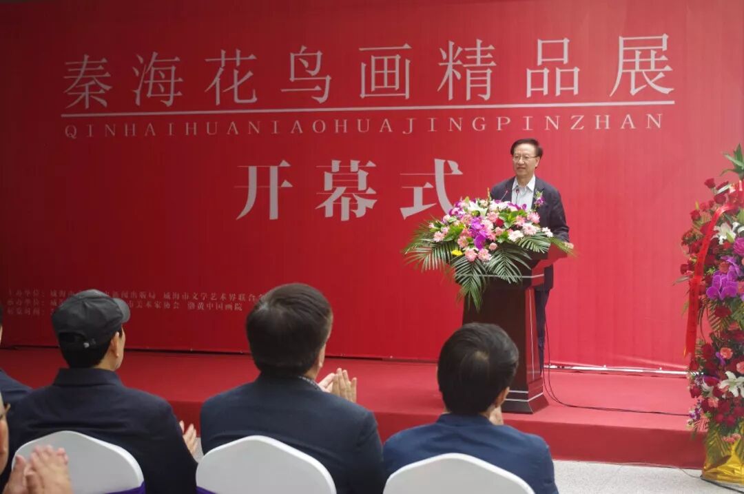 五月的滨城威海,青山萦翠,碧海流云。沐浴着宜居城市的缕缕清风,秦海花鸟画精品展今天在威海美术馆隆重开幕了。在此,我对他时隔10年后再次在家乡举办个人画展表示热烈祝贺!
