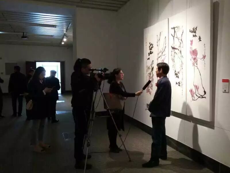 此次展览共展出了秦海先生创作的百余幅精品佳作,既有宏篇巨幅,也有盈尺小品。秦海先生把此次画展看做是向家乡的汇报展,特将在去年北京个人画展的基础上,精选新作三十余幅首次展示于家乡观众面前。画展最大亮点是画家创作的一批巨幅佳作,长10米、高2米的巨幅<龙蛇飞舞紫云中>尤为引人注目,作品线条凝练遒劲,笔墨劲健朴茂、刚柔并济,气度恢弘古朴、浑厚苍莽,情感自由纵横、风流奔放,画面充满着东方艺术神韵的阳刚之美和春天蓬勃灵动的生机节奏,不愧为当代大写意花鸟画难得的鸿篇巨幅之精品!