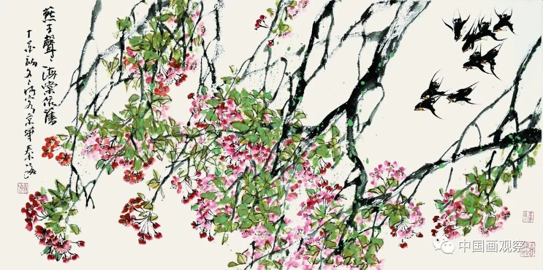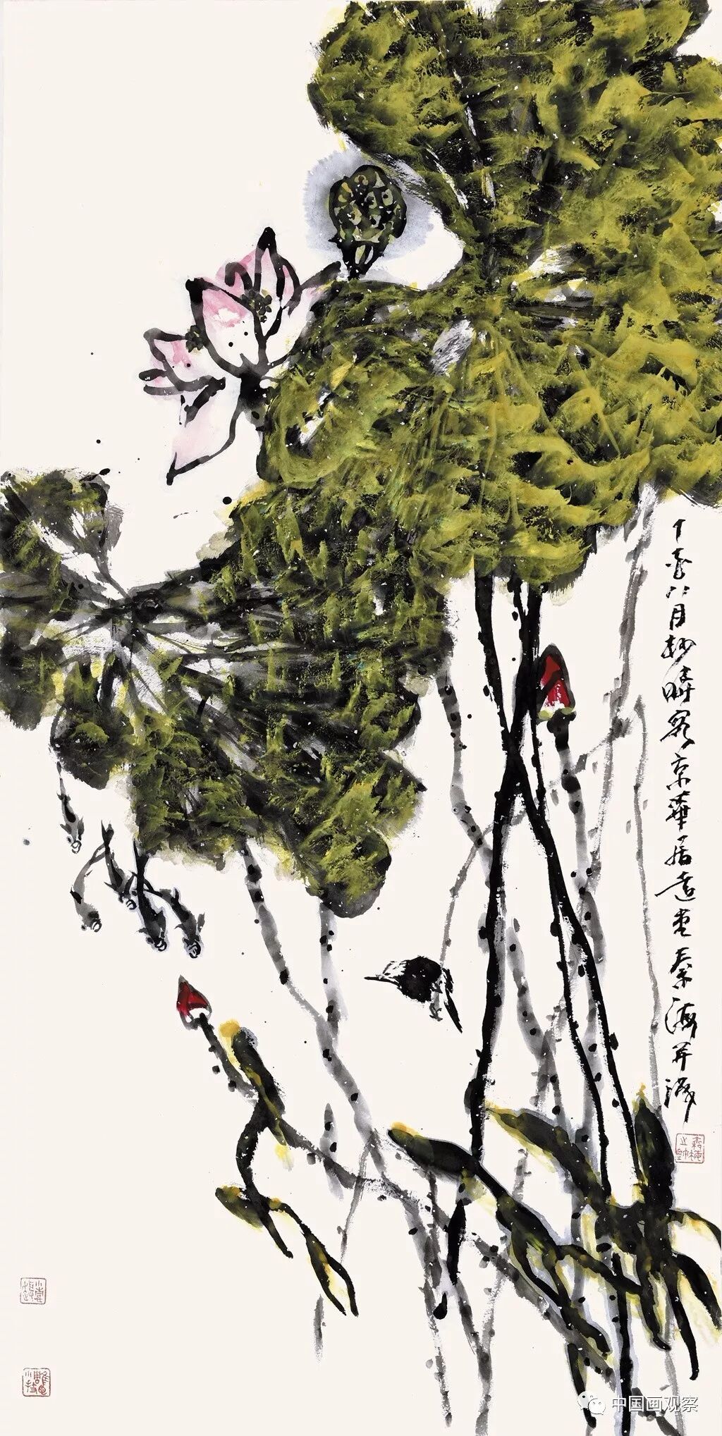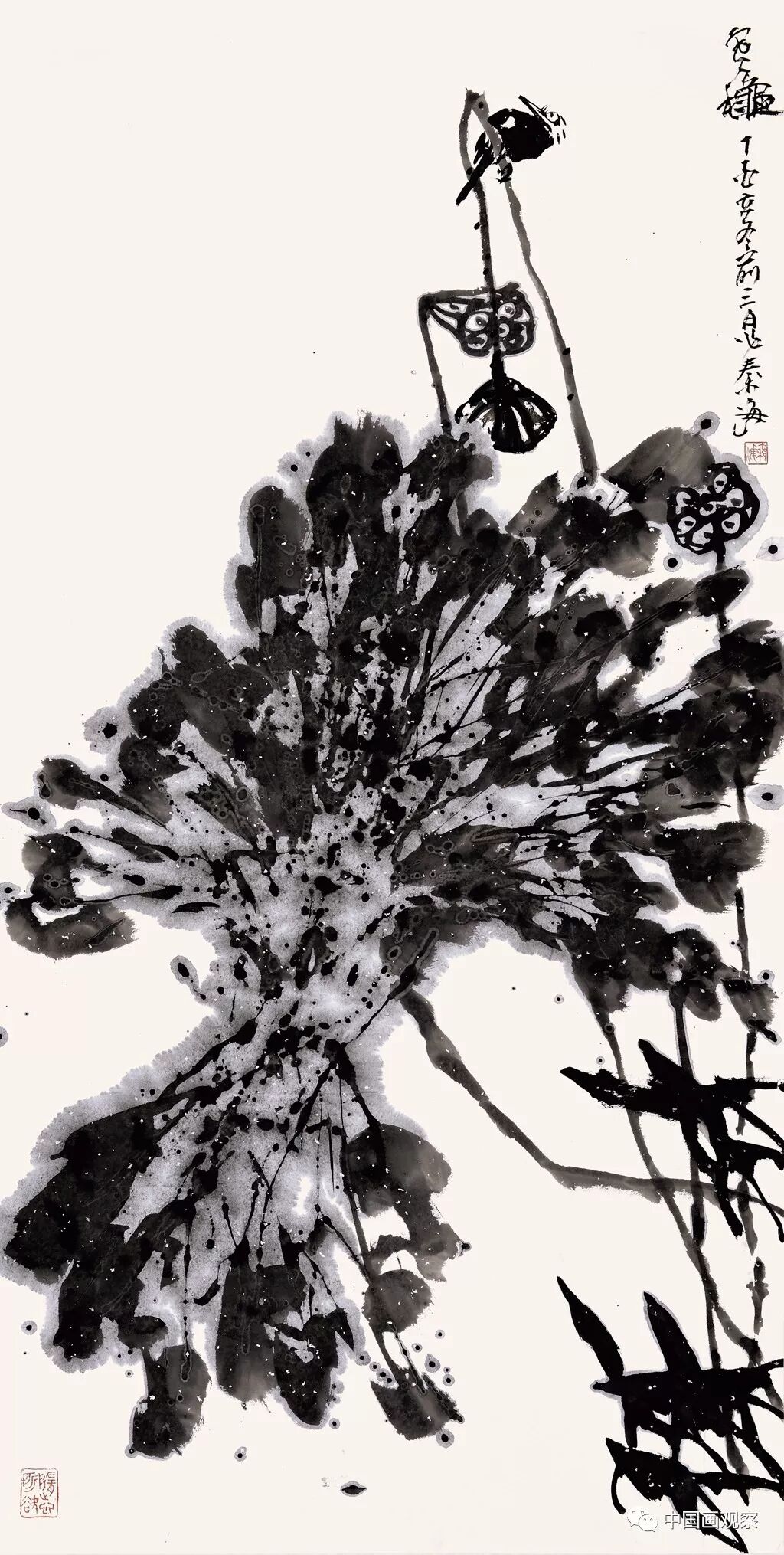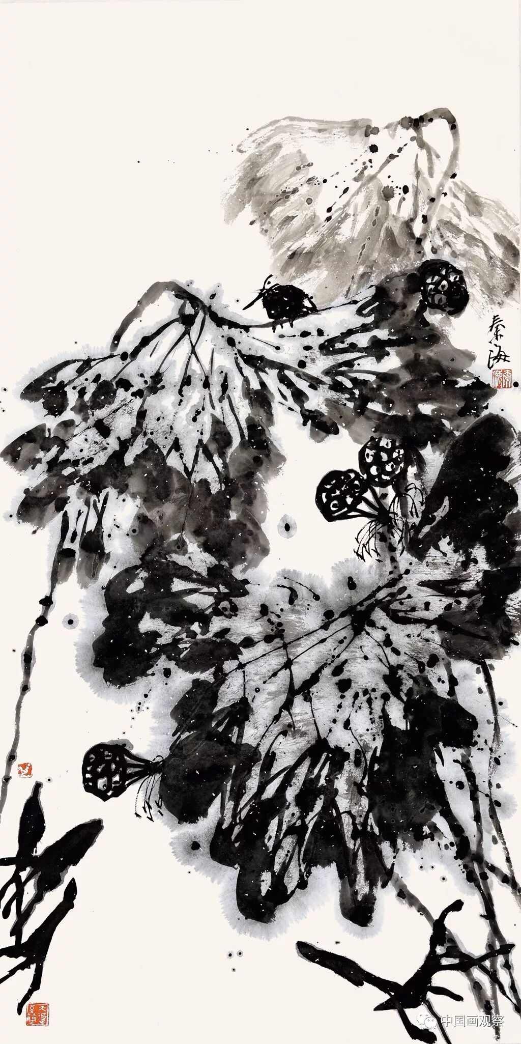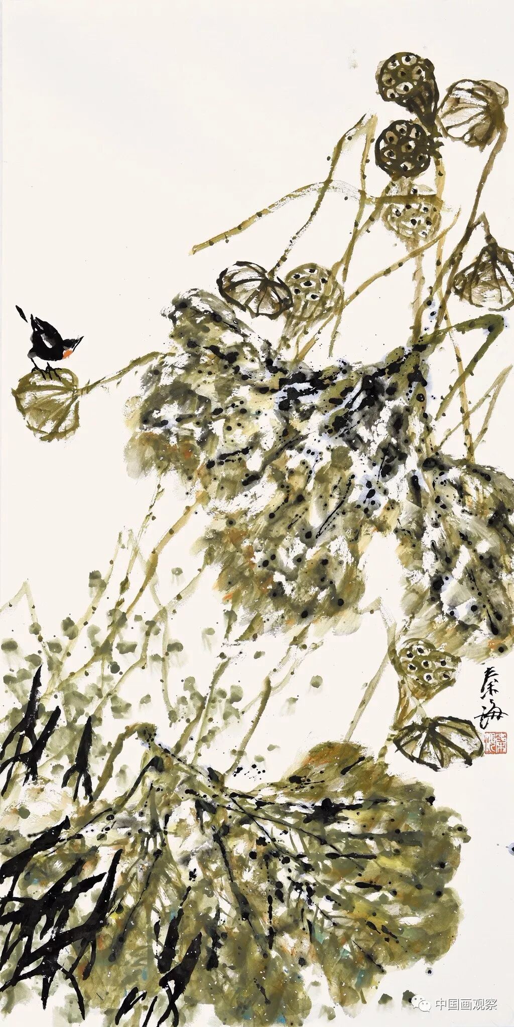在当代花鸟画领域,秦海凭借对艺术的执着与热诚,对传统写意花鸟进行了探索和开拓,使之成为更具现代感和抽象性的审美表现。写实性和书写性的结合,墨和彩的交融,构成了有线条美感和彩墨新意的花鸟图式,为写意花鸟注入了更多时代的新元素,与朴素之中袒露出画家的真诚和匠心。这一笔墨语言的探索,代表了画家对传统写意的独特理解和认识,从全新的角度诠释了当代写意花鸟的审美特质,由此拓宽了这个古老画种的审美疆域。