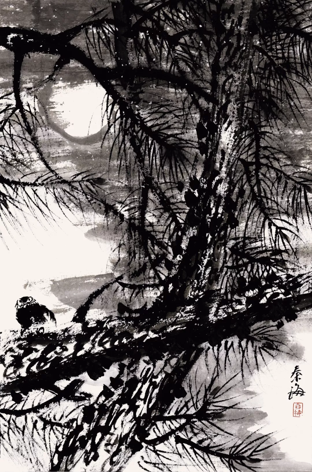 非常高兴参加在炎黄艺术馆隆重举办的〈秦海中国画作品展〉。秦海是我的老朋友、画友。三十多年前认识他的时候,还是基层一名普通的工作人员,但在花鸟画的创作上,已经是取得了相当的成绩,而且有独特的个人面貌。现在他从行政工作退下来,成为了一位专业的、作品创作量颇丰的、水平越来越高的著名写意花鸟画家。